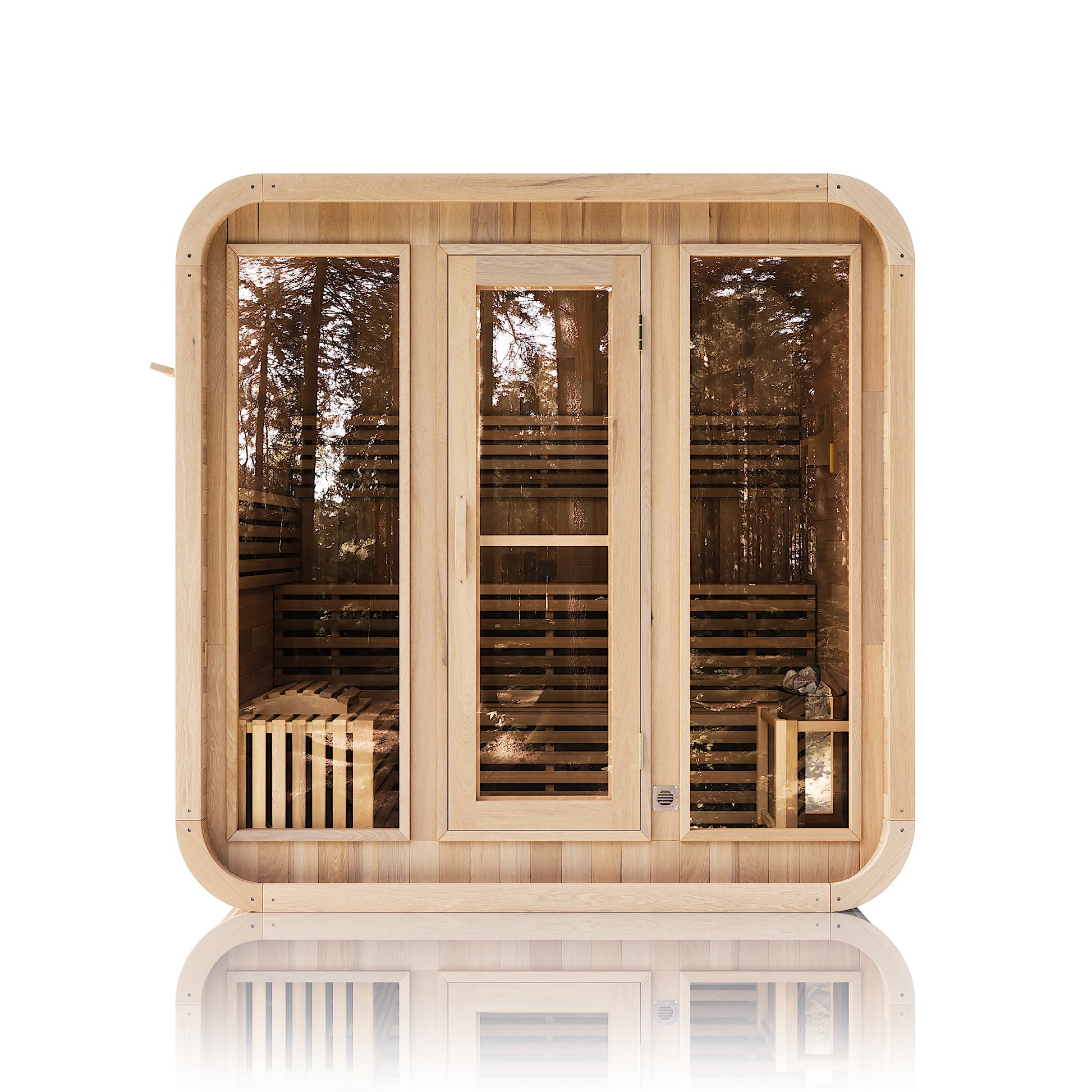 Depending on the model, we make sure to specify which Rodeo Sauna models are designed for either indoor or outdoor use. For outdoor setups, we recommend placing the sauna on a level, weather-proof surface with proper electrical protection.