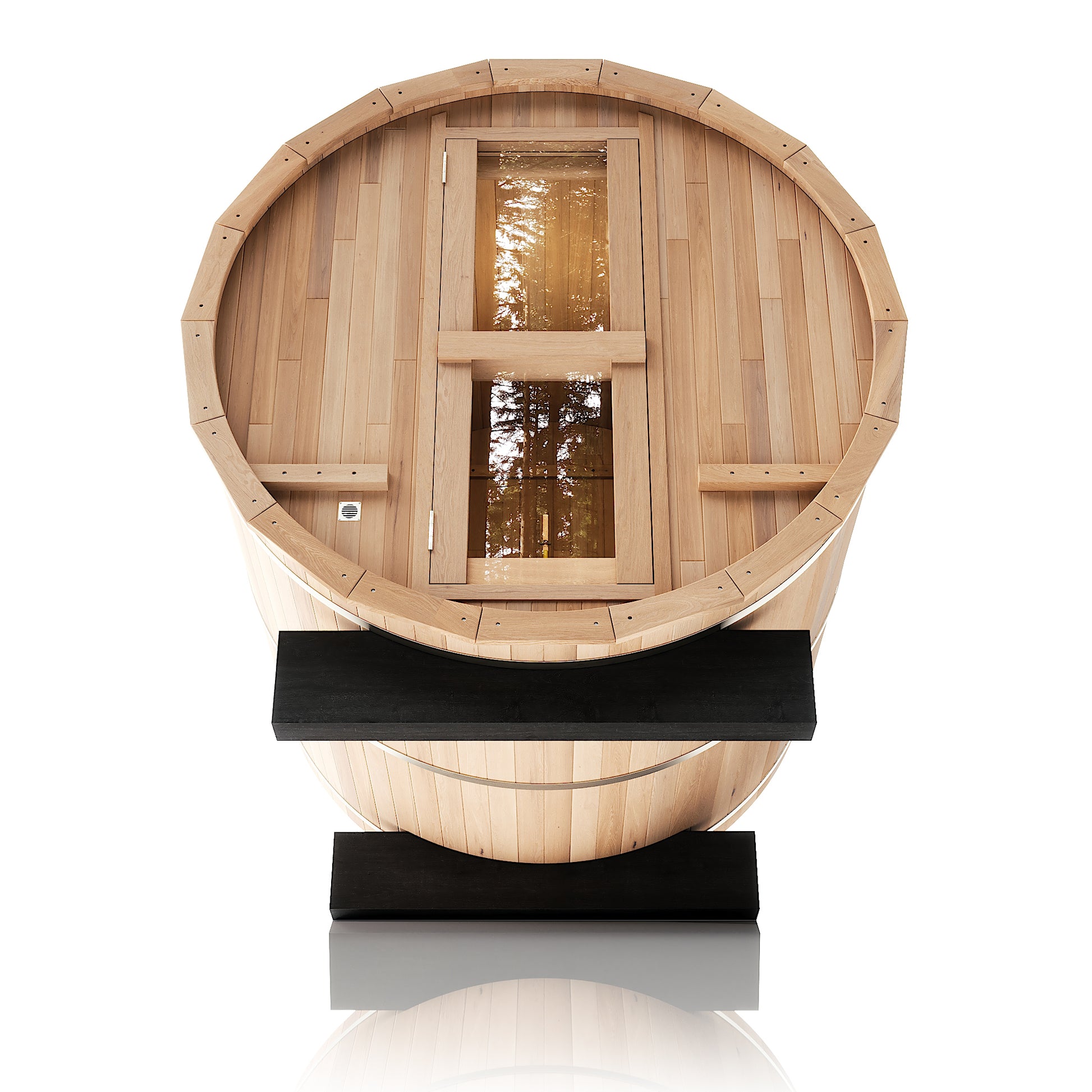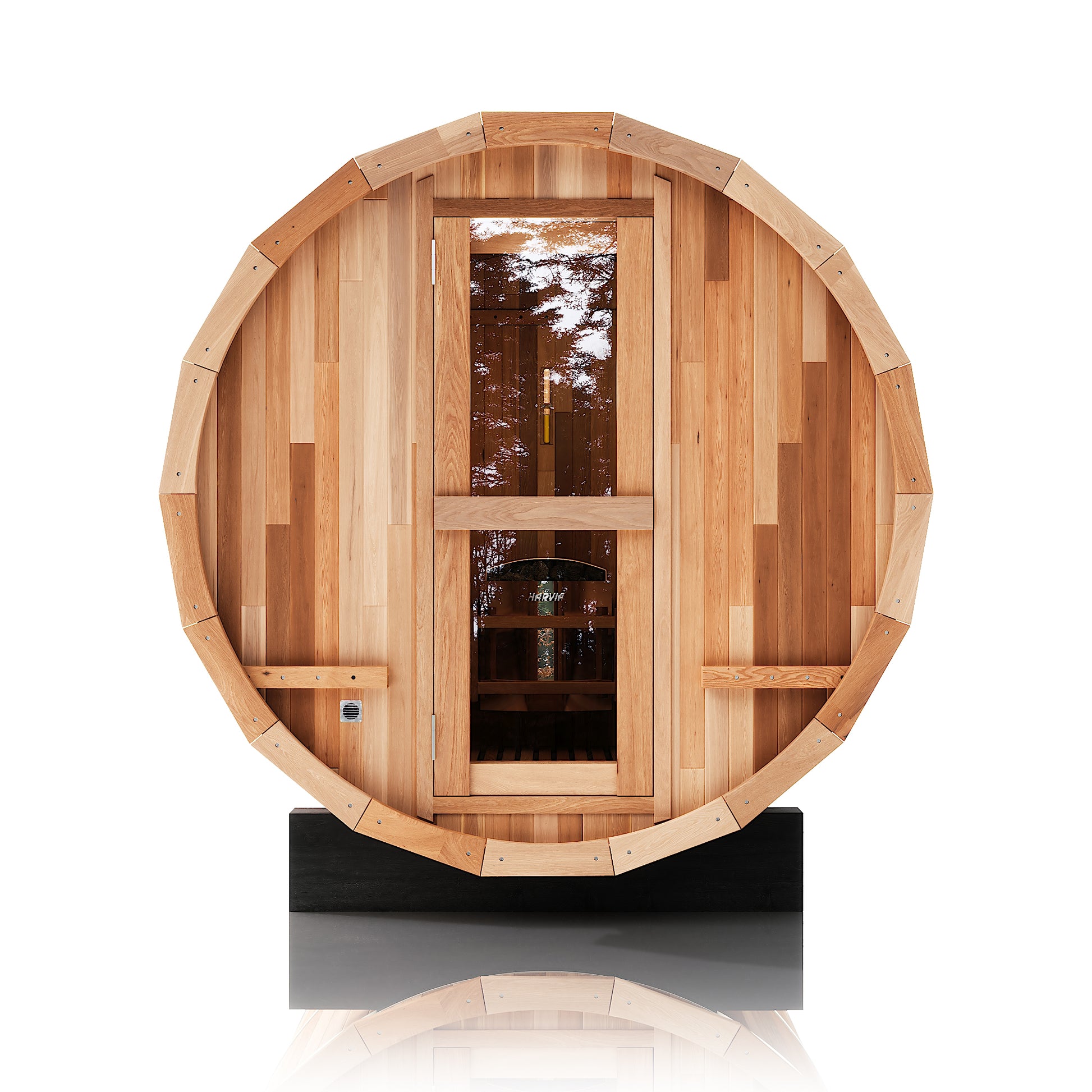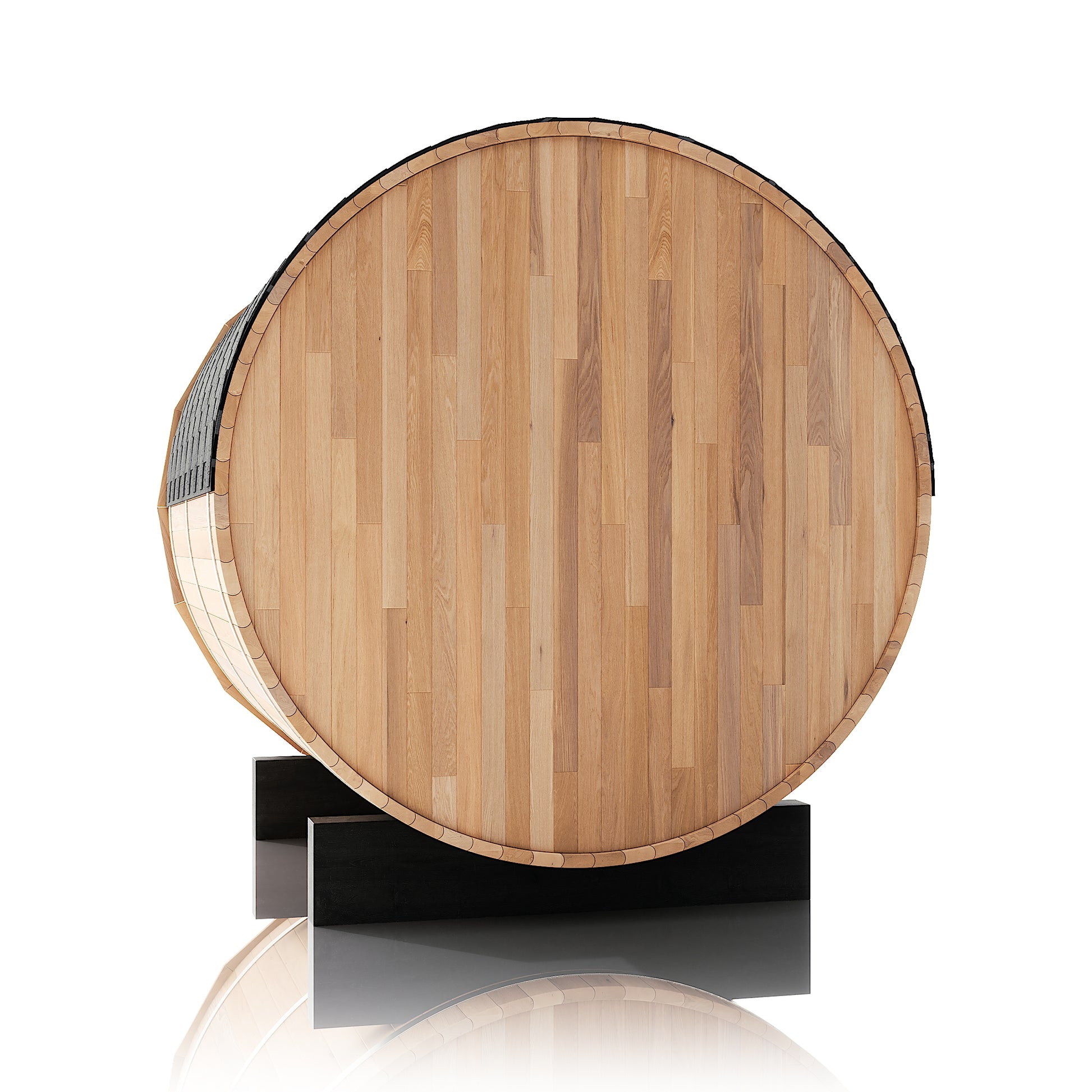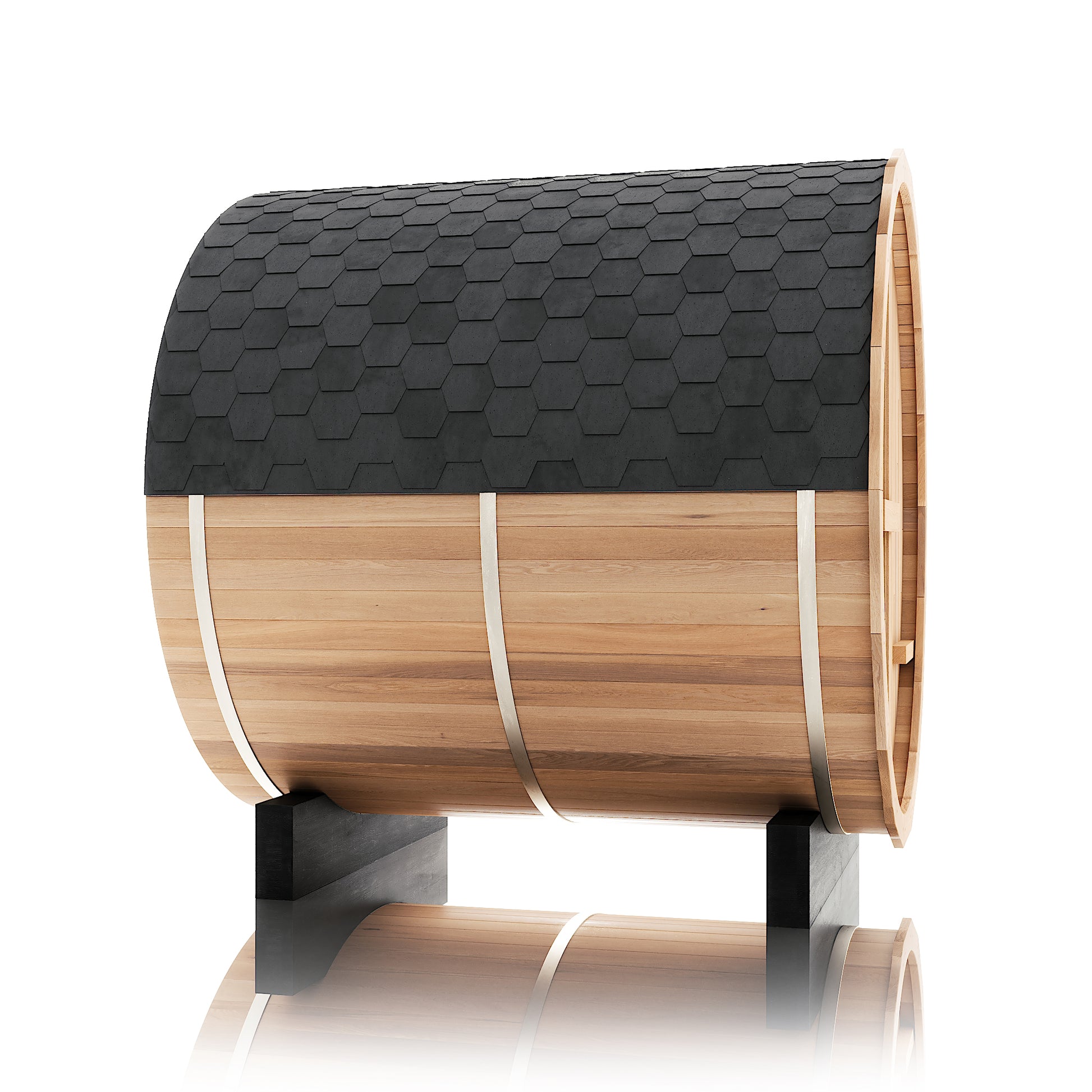 The Renegade is a rugged yet refined 4–6 person barrel sauna crafted from premium Hemlock or Red Cedar. Built for those who want big performance in a smaller footprint, it’s a compact barrel that packs a serious punch—powered by a 6 kW Harvia heater, volcanic steam stones, and two long reclining benches for a full-spectrum, deeply restorative sauna session.