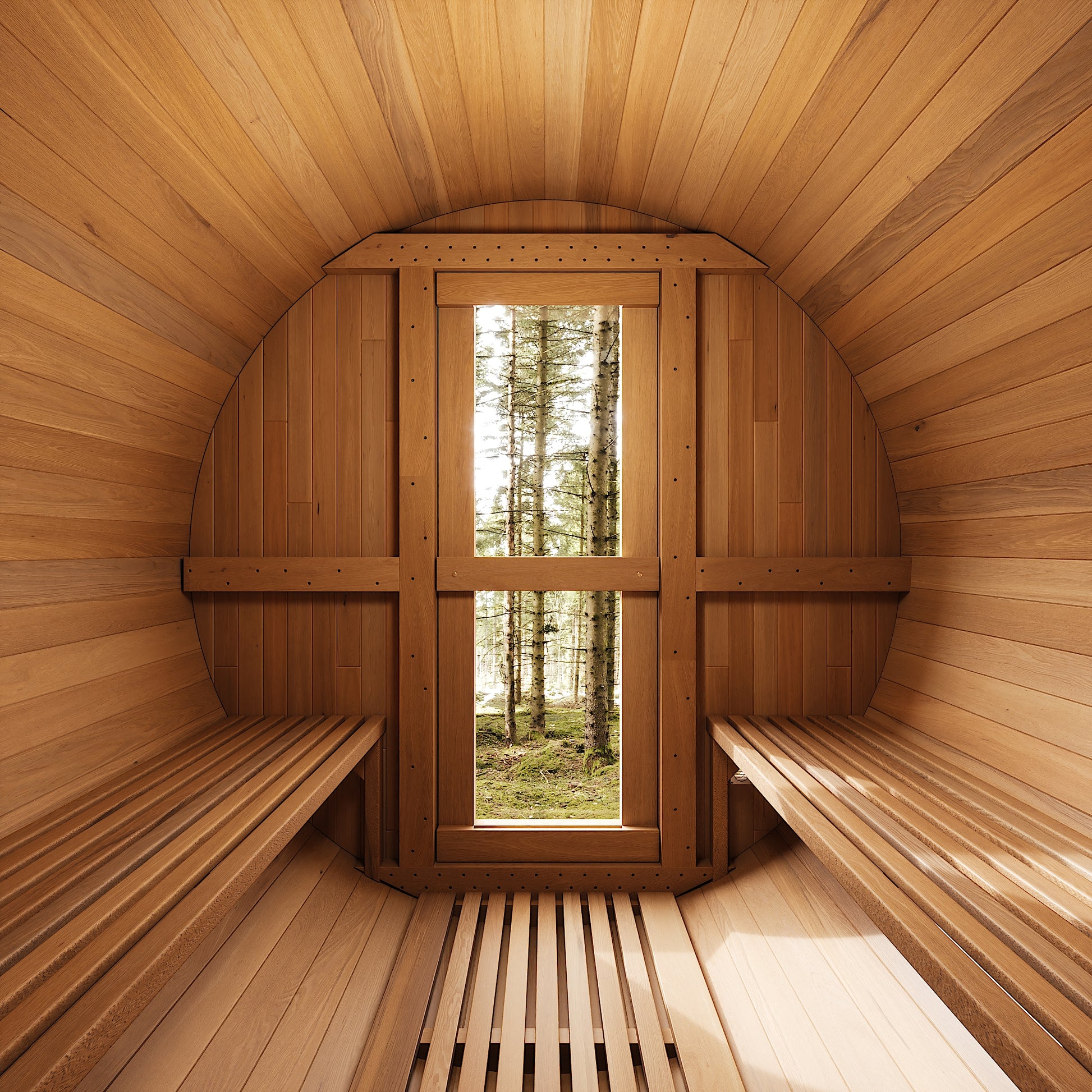 The Barrel 3 Sauna is designed to comfortably seat 2–4 adults.