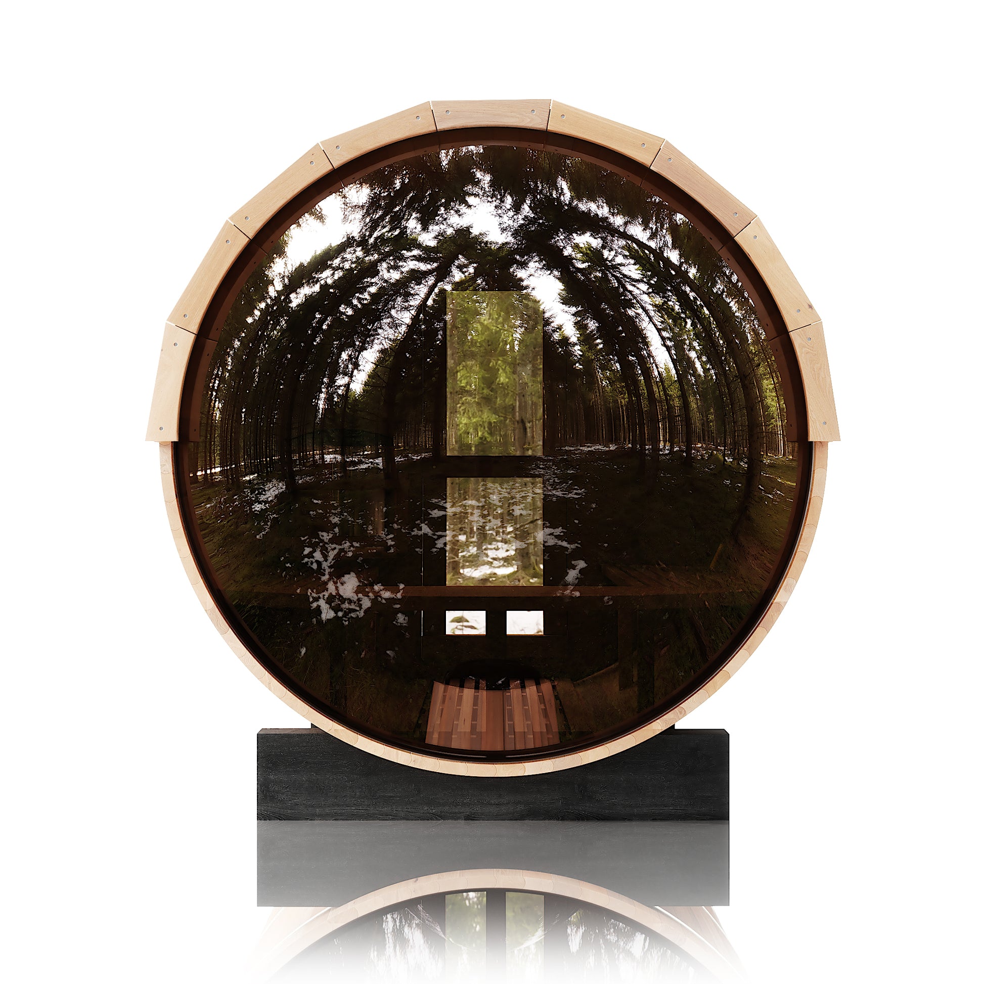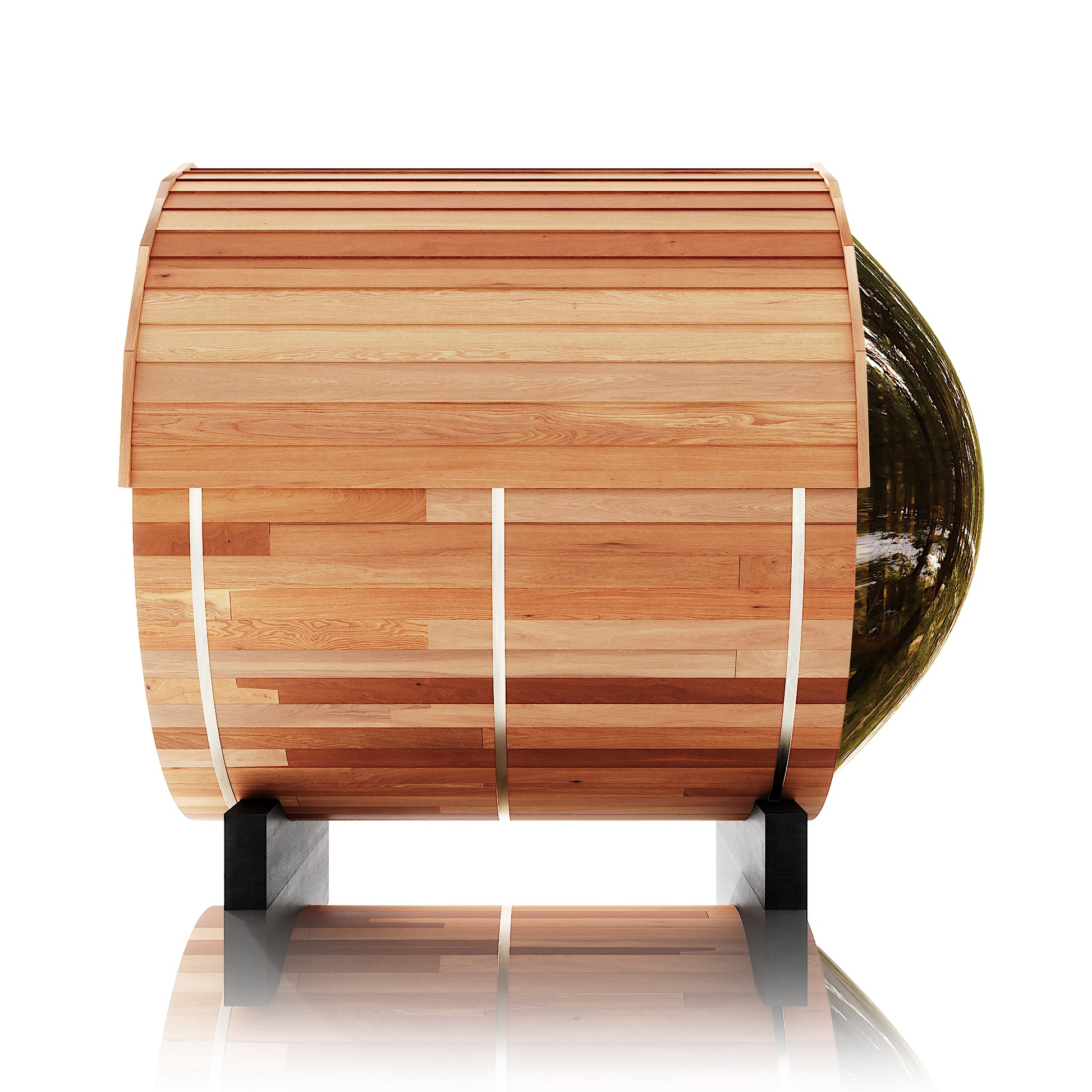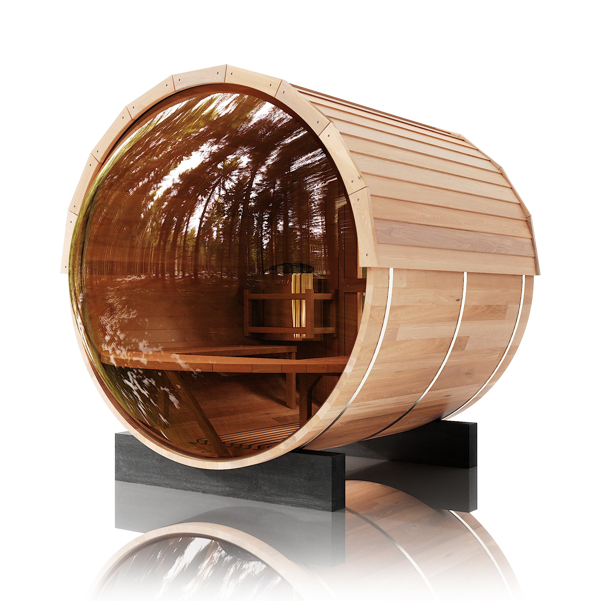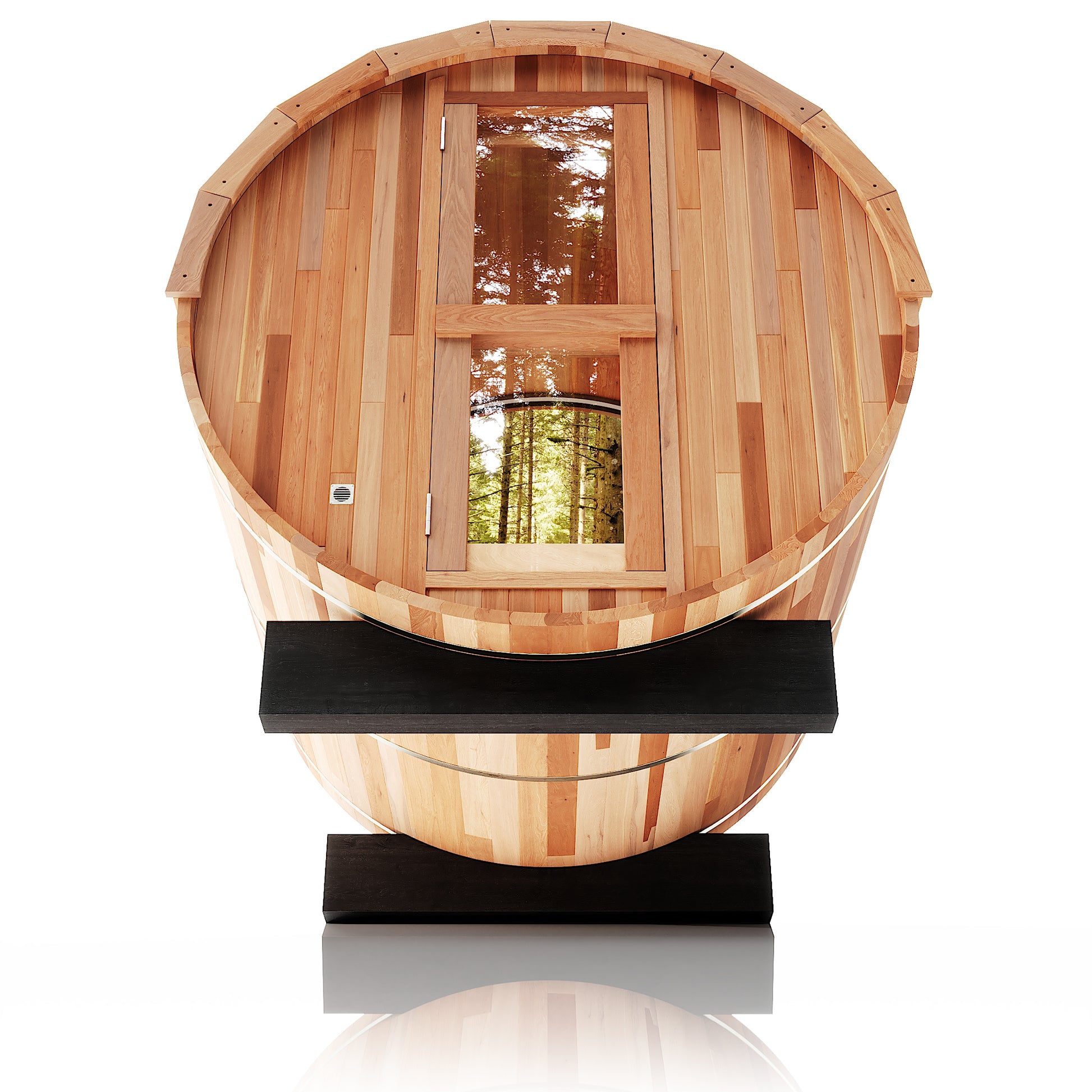 The Trailblazer sauna is designed for 4–6 people and is available in premium Hemlock or Red Cedar wood, offering natural durability, excellent insulation, and resistance to warping, with Red Cedar adding rich aroma and enhanced moisture protection; it is powered by a Harvia SW60 electric heater delivering 6.0 kW of heat on 220V / 240V with a 30A current, and provides a temperature range of 0–195°F for consistent sauna sessions. Each unit includes a complete accessory set with a wooden bucket and spoon, anti-crack volcanic stones for steam generation, a sandglass timer, a thermo-hygrometer, and explosion-proof lighting, while construction highlights include a waterproof asphalt-tiled roof with sealed joints to prevent leaks, a heat-resistant wooden door handle, a breathable vent hole for fresh airflow, high-temperature explosion-proof lighting, and an 18-inch-wide bench designed for comfortable reclining or lying down.